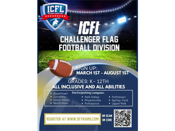 The ICFL Challenger Flag Football Division is entering into their second season starting in fall 2026. This division is open to children who will be entering Kindergarten through 12th grade. The Challenger League provides individuals with learning and physical disabilities the opportunity to play Flag Football in a fun non-competitive environment - supported by a dedicated and enthusiastic community of buddies and families.